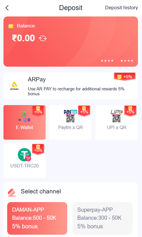 To begin playing, you’ll need to fund your wallet. Daman Games APK supports multiple deposit methods, making it easy to add funds: