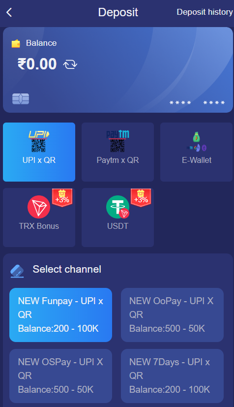 To make the most of Tiranga Games APK, you may need to add funds to your account. The app provides multiple deposit options for user convenience: